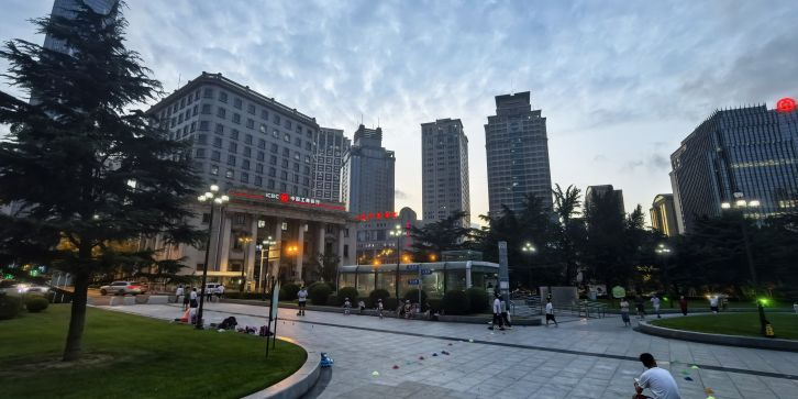 始建于 1899 年,1903 年竣工,最初取名为尼古拉耶夫广场,1946 年,以孙中山的名字命名为中山广场。广场呈圆形辐射状,中心圆台直径 213 米,10 个出口延伸出 10 条街道,通向四面八方,总面积 2.2 万平方米,是大连市乃至东北地区最大的圆形广场。中山广场是巴黎式的辐射式布局,有异于中国传统的方格式建筑布局,广场周围建筑有罗马式、哥特式、文艺复兴风格和折中主义等,欧味很浓,玉石铺装的中心圆台典雅醒目。中山广场的建设经历了沙俄租借、日本占领和中苏共管及新中国等几个重要历史时期,周边建筑见证了大连地区百余年的历史变迁,是大连城市发展的活化石。广场近代建筑群是中国二十世纪建筑遗产,是全国重点文物保护单位,其中包括 3 座国家级文物保护单位、5 座省级文物保护单位,具有极高的文化、艺术价值。